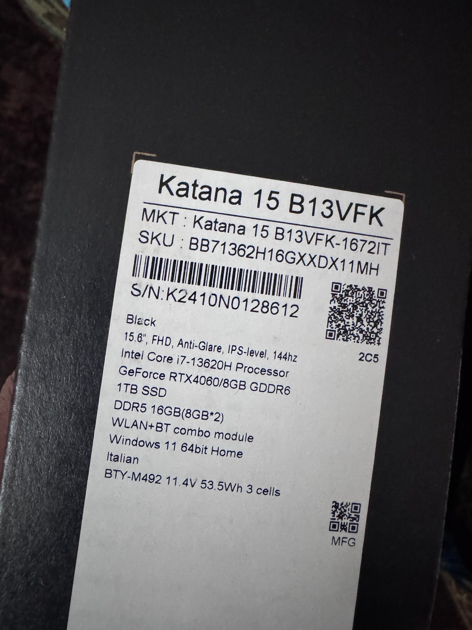 MSI Katana 15 / Intel Core i7-13620H / 16GB / 1T SSD / RTX 4060 / FHD / 144Hz / 15.6